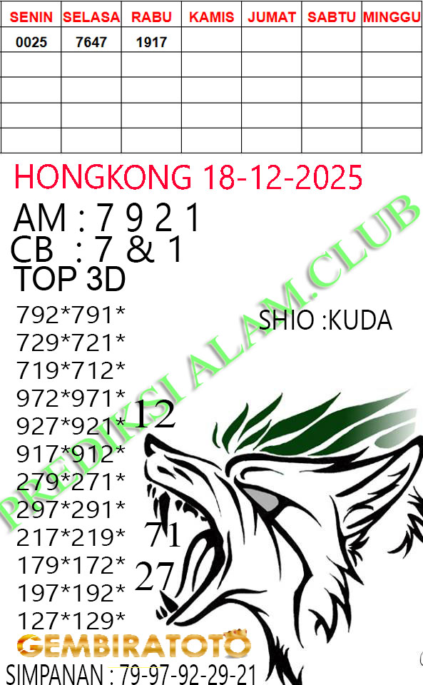 Syair Hongkong Lotto Kamis 18 Desember 2025