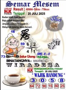 Syair Hongkong Lotto Minggu 20 Juli 2025