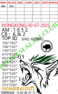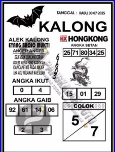 Syair Hongkong Lotto Rabu 30 Juli 2025