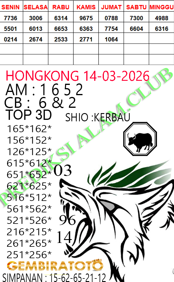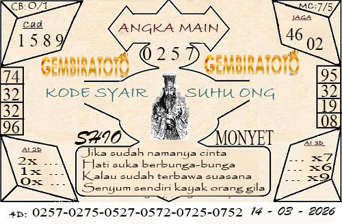 Syair Hongkong Lotto Sabtu 14 Maret 2026