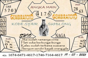 Syair Hongkong Lotto Sabtu 19 Juli 2025