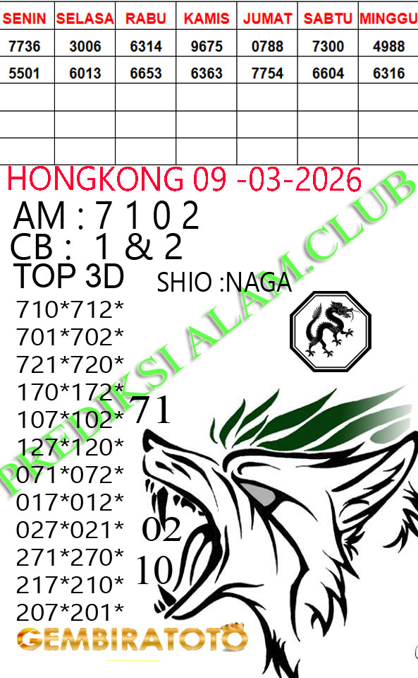 Syair Hongkong Lotto Senin 09 Maret 2026
