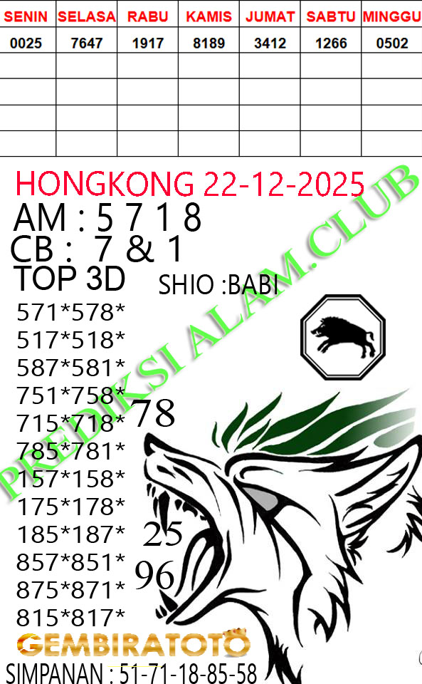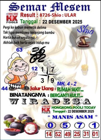 Syair Hongkong Lotto Senin 22 Desember 2025