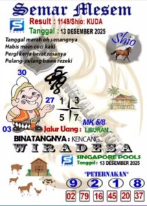 Syair Singapore Sabtu 13 Desember 2025