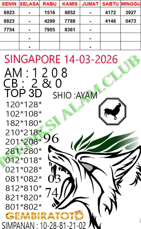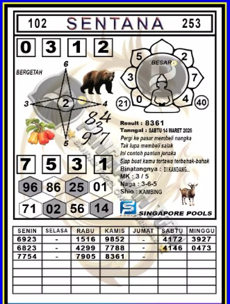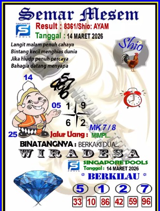 Syair Singapore Sabtu Jumat 14 Maret 2026