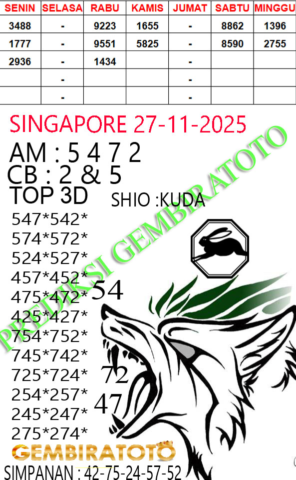 Selamat Datang di SINGAPORE Gembiratoto, disini syair paling lengkap dan juga syair yang paling cepat di naikan , dan juga ada prediksi togel yang lain untuk semua pasaran togel tiap hari nya kita upload serta ada paito warna juga, dan semua nya hanya berdasarkan prediksi serta syair tidak ada yang pasti dalam bermain togel semoga angka angka prediksi yang kita keluar kan bisa keluar untuk resultnya Syair.