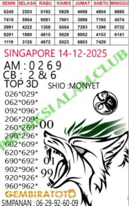 Syair Singapore Sabtu 14 Desember 2025