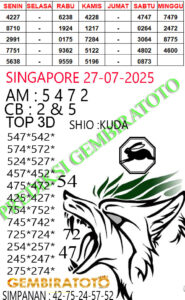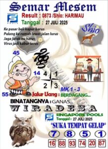 Syair Singapore Minggu 27 Juli 2025