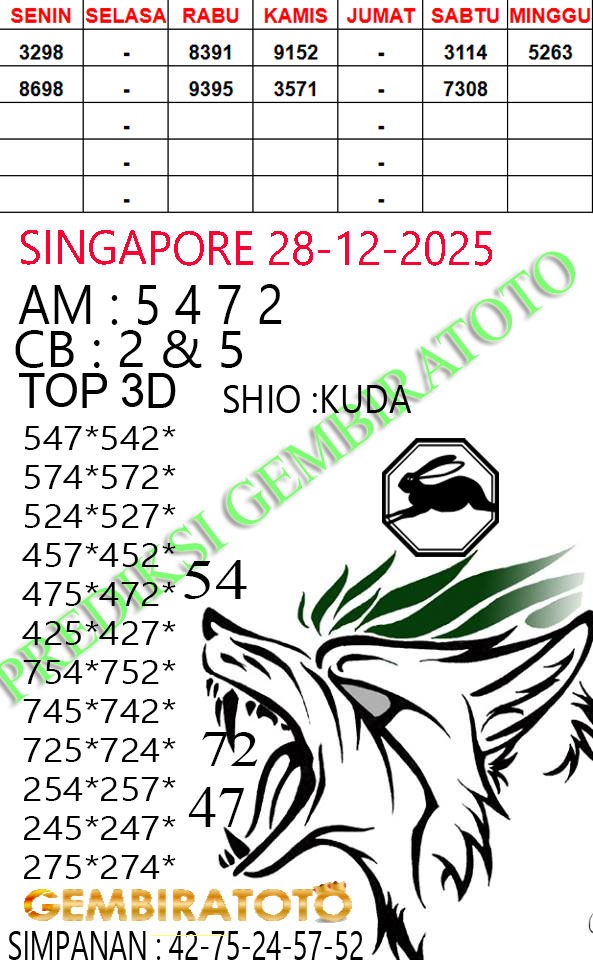 Selamat Datang di SINGAPORE Gembiratoto, disini syair paling lengkap dan juga syair yang paling cepat di naikan , dan juga ada prediksi togel yang lain untuk semua pasaran togel tiap hari nya kita upload serta ada paito warna juga, dan semua nya hanya berdasarkan prediksi serta syair tidak ada yang pasti dalam bermain togel semoga angka angka prediksi yang kita keluar kan bisa keluar untuk resultnya Syair.