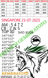 Selamat Datang di SINGAPORE Gembiratoto, disini syair paling lengkap dan juga syair yang paling cepat di naikan , dan juga ada prediksi togel yang lain untuk semua pasaran togel tiap hari nya kita upload serta ada paito warna juga, dan semua nya hanya berdasarkan prediksi serta syair tidak ada yang pasti dalam bermain togel semoga angka angka prediksi yang kita keluar kan bisa keluar untuk resultnya Syair.