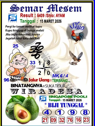 Selamat Datang di SINGAPORE Gembiratoto, disini syair paling lengkap dan juga syair yang paling cepat di naikan , dan juga ada prediksi togel yang lain untuk semua pasaran togel tiap hari nya kita upload serta ada paito warna juga, dan semua nya hanya berdasarkan prediksi serta syair tidak ada yang pasti dalam bermain togel semoga angka angka prediksi yang kita keluar kan bisa keluar untuk resultnya Syair.