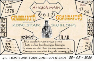 Selamat Datang di SINGAPORE Gembiratoto, disini syair paling lengkap dan juga syair yang paling cepat di naikan , dan juga ada prediksi togel yang lain untuk semua pasaran togel tiap hari nya kita upload serta ada paito warna juga, dan semua nya hanya berdasarkan prediksi serta syair tidak ada yang pasti dalam bermain togel semoga angka angka prediksi yang kita keluar kan bisa keluar untuk resultnya Syair.