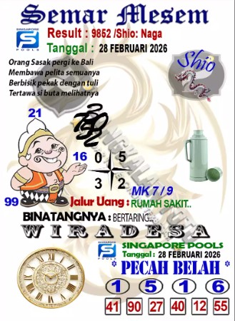 Syair Singapore Sabtu 28 Febuari 2026