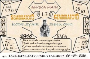 Selamat Datang di SINGAPORE Gembiratoto, disini syair paling lengkap dan juga syair yang paling cepat di naikan , dan juga ada prediksi togel yang lain untuk semua pasaran togel tiap hari nya kita upload serta ada paito warna juga, dan semua nya hanya berdasarkan prediksi serta syair tidak ada yang pasti dalam bermain togel semoga angka angka prediksi yang kita keluar kan bisa keluar untuk resultnya Syair.