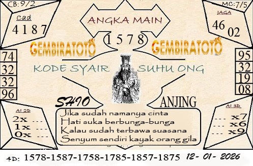 Selamat Datang di SINGAPORE Gembiratoto, disini syair paling lengkap dan juga syair yang paling cepat di naikan , dan juga ada prediksi togel yang lain untuk semua pasaran togel tiap hari nya kita upload serta ada paito warna juga, dan semua nya hanya berdasarkan prediksi serta syair tidak ada yang pasti dalam bermain togel semoga angka angka prediksi yang kita keluar kan bisa keluar untuk resultnya Syair.