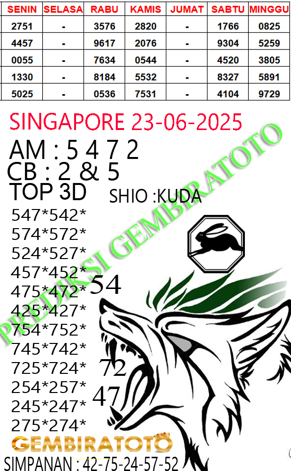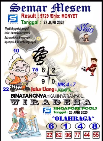 Syair Singapore Senin 23 Juni 2025