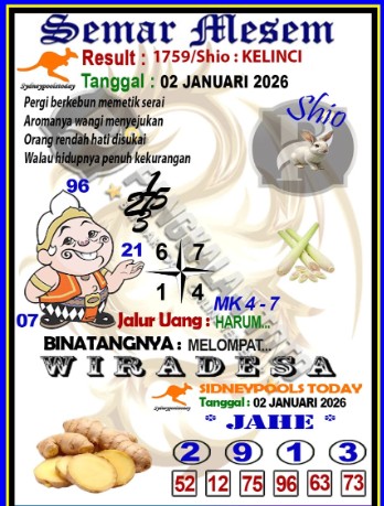 Syair Sydney Lotto Jumat 02 Januari 2026
