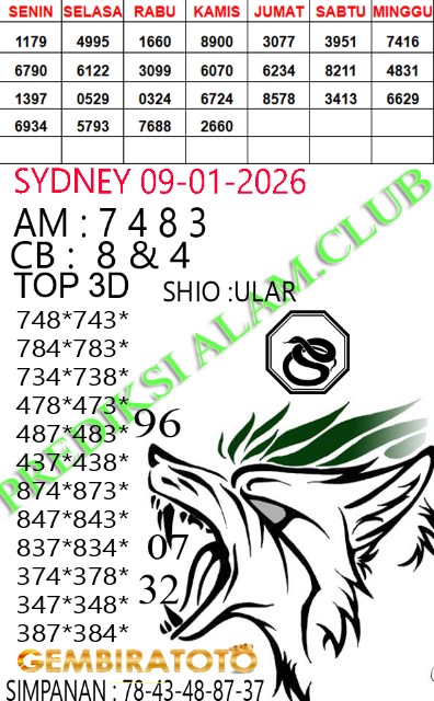 Syair Sydney Lotto Jumat 09 Januari 2026