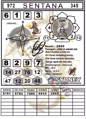Syair Sydney Lotto Jumat 09 Januari 2026