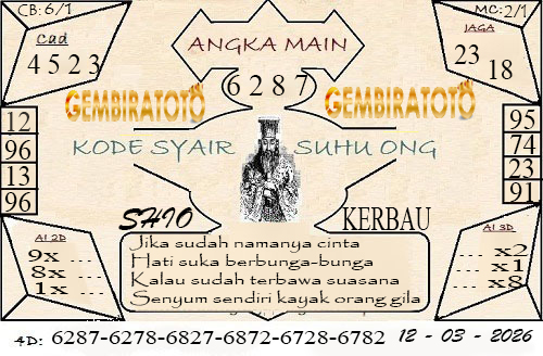 Selamat Datang di SYDNEY Gembiratoto, disini syair paling lengkap dan juga syair yang paling cepat di naikan , dan juga ada prediksi togel yang lain untuk semua pasaran togel tiap hari nya kita upload serta ada paito warna juga, dan semua nya hanya berdasarkan prediksi serta syair tidak ada yang pasti dalam bermain togel semoga angka angka prediksi yang kita keluar kan bisa keluar untuk resultnya Syair.