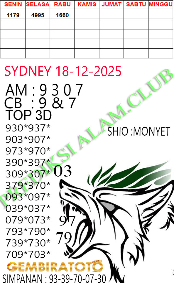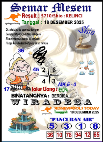 Syair Sydney Lotto kamis 18 Desember 2025