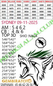 Syair Sydney Lotto Minggu 09 November 2025