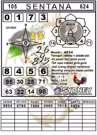 Syair Sydney Lotto Minggu 11 Januari 2026