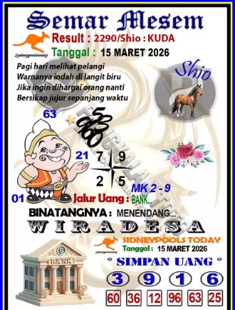 Syair Sydney Lotto Minggu 15 Maret 2026