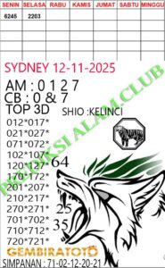 Selamat Datang di SYDNEY Gembiratoto, disini syair paling lengkap dan juga syair yang paling cepat di naikan , dan juga ada prediksi togel yang lain untuk semua pasaran togel tiap hari nya kita upload serta ada paito warna juga, dan semua nya hanya berdasarkan prediksi serta syair tidak ada yang pasti dalam bermain togel semoga angka angka prediksi yang kita keluar kan bisa keluar untuk resultnya Syair.