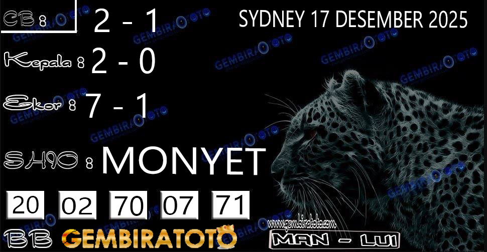 Selamat Datang di SYDNEY Gembiratoto, disini syair paling lengkap dan juga syair yang paling cepat di naikan , dan juga ada prediksi togel yang lain untuk semua pasaran togel tiap hari nya kita upload serta ada paito warna juga, dan semua nya hanya berdasarkan prediksi serta syair tidak ada yang pasti dalam bermain togel semoga angka angka prediksi yang kita keluar kan bisa keluar untuk resultnya Syair.