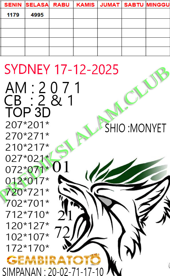 Syair Sydney Lotto Rabu 17 Desember 2025