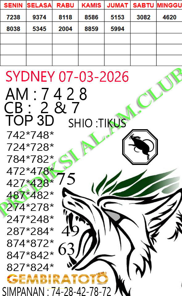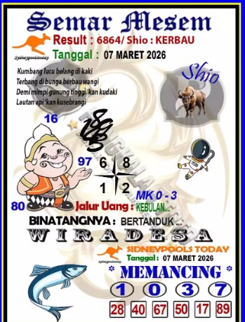 Syair Sydney Lotto Sabtu 07 Maret 2026