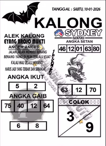 Syair Sydney Lotto Sabtu 10 Januari 2026