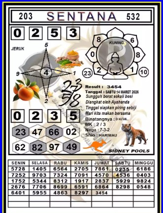 Syair Sydney Lotto Sabtu 14 Maret 2026