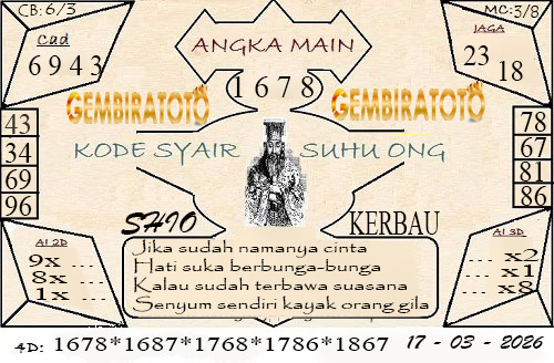 Selamat Datang di SYDNEY Gembiratoto, disini syair paling lengkap dan juga syair yang paling cepat di naikan , dan juga ada prediksi togel yang lain untuk semua pasaran togel tiap hari nya kita upload serta ada paito warna juga, dan semua nya hanya berdasarkan prediksi serta syair tidak ada yang pasti dalam bermain togel semoga angka angka prediksi yang kita keluar kan bisa keluar untuk resultnya Syair.