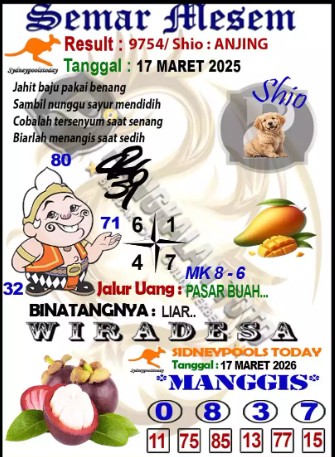 Syair Sydney Lotto Selasa 17 Maret 2026