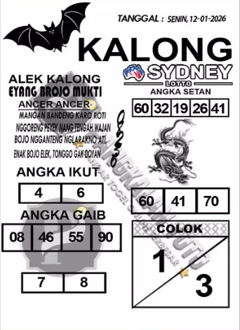 Syair Sydney Lotto Senin 12 Januari 2026