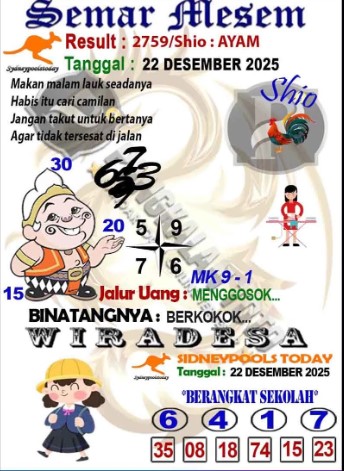 Syair Sydney Lotto Senin 22 Desember 2025