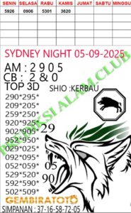Syair SydneyNight Jumat 05 September 2025