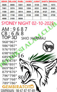 Syair SydneyNight Kamis 02 Oktober 2025