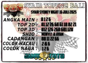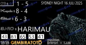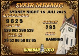 Syair SydneyNight Rabu 16 Juli 2025