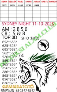 Syair SydneyNight Sabtu 11 Oktober 2025