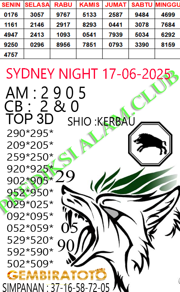 Syair SydneyNight Selasa 17 Juni 2025
