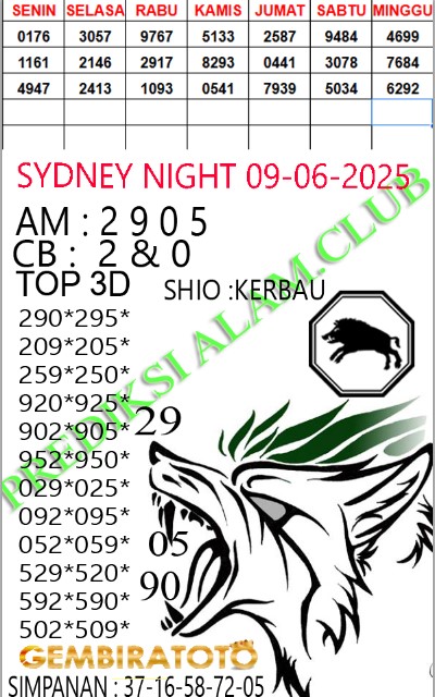 Syair SydneyNight Senin 09 Juni 2025
