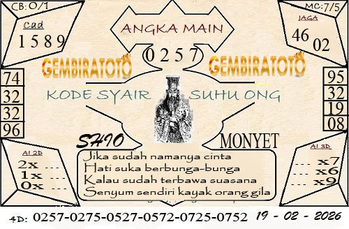 Syair Hongkong Lotto Kamis 19 Februari 2026