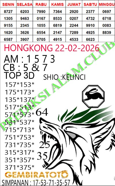 Syair Hongkong Lotto Minggu 22 Februari 2026