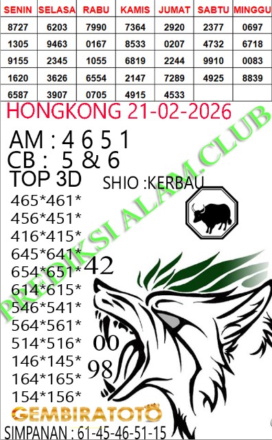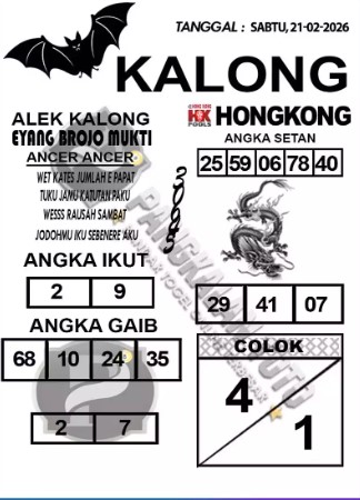 Syair Hongkong Lotto Sabtu 21 Februari 2026