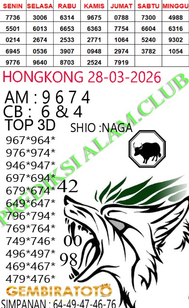 Syair Hongkong Lotto Sabtu 28 Maret 2026