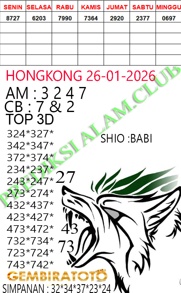 Syair Hongkong Lotto Senin 26 Januari 2026