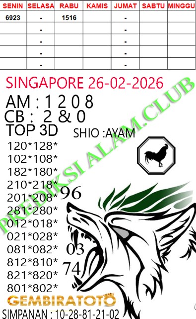 Syair Singapore Kamis 26 Febuari 2026